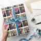 Papier d'emballage monogramme personnalisé de noël avec 3 photos à remplacer par le vôtre, le nom des récipiendaires et la parties scintillant initiale, faux rose, le dicton "joyeux noël" qui peut être modifié pour convenir à toute célébration, et l'année.
