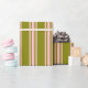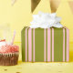 Ce papier d'emballage est décoré d'un motif rayé vert et rose. Il peut être amusant d'utiliser du papier d'emballage comme celui-ci lorsque des cadeaux sont offerts pour célébrer un anniversaire, un mariage, un anniversaire ou un autre événement.