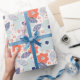 Papier Cadeau Motif à fleurs moderne orange et bleu