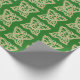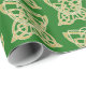 Beau papier d'emballage avec motif de papillon celtique en or et blanc sur arrière - plan vert. Le papillon celtique est un symbole de l'âme et de la renaissance