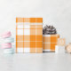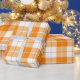 Un papier d'emballage conçu avec un motif de plaid orange et blanc de grande taille. Customisez le arrière - plan blanc entre autres options.