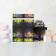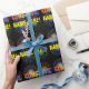 Cette conception de papier d'emballage de félicitations amusante comprend le message "CONGRATS" avec les lettres ayant un look motif inspiré du spectre arc-en-ciel, avec un nom personnalisable, et un feu d'artifice coloré inspiré motif sur un arrière - plan sombre. Envelopper un papier comme celui-ci pourrait être une façon amusante d'envelopper un cadeau de félicitations donné à quelqu'un qui a accompli quelque chose d'important.