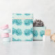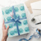 Envelopper le papier avec un motif extensible de 3 roses turquoises peints à l'aquarelle. Cadre vert à la menthe. Chic et design.