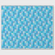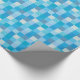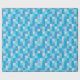 Ce papier d'emballage comporte des carrés dans différentes nuances de bleu dans un motif pixelated.