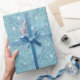 Papier Cadeau Motif bleu soyeux et étincelles blanches