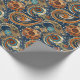 Papier Cadeau Motif Celestial Paisley Marine Bleu, Orange, Or
