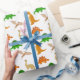 Un joli papier d'emballage pour les enfants qui aiment les dinosaures, ce design présente une gamme de dinosaures dans les tons brun et vert.