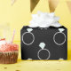 Papier d'emballage noir avec un motif des bagues à diamant. Perfectionnez pour des mariages, des célébrations de fiançailles, et des douches nuptiales !