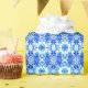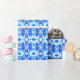 Papier enveloppant dans un effet batik, motif carrelé, avec des éléments floraux abstraits, dans des tons de denim, de cobalt et de ciel