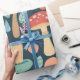 Un motif fantaisiste qui présente sur un arrière - plan turquoise sombre des champignons colorés et des éléments feuillus évoquant le charme magique d'une forêt enchantée.