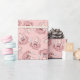 Pink squid boss cartoon with moustache holding knife and cooking fork Les Seamless sont en train de pleurer. Custom background color.