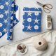 Motif de poisson étoilé et de sable sur arrière - plan bleu moyen. Rouleau personnalisé de papier d'emballage. Idée cadeau pour adultes et enfants qui aiment la mer.