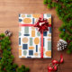 Ce papier d'emballage a un design moderne du milieu du siècle des ovales et des rectangles en motif qui se répètent dans la conception.