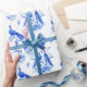 Emballage cadeau motif bleu paon royal, bleu et blanc.