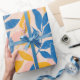 Ajoutez une touche moderne et ludique à votre cadeau grâce à ce papier d'emballage motif à feuilles bleues et jaunes. Les feuilles audacieux, de style lithographe, font de la pop contre un arrière - plan rose doux, créant un look rétro et contemporain. Parfait pour toute occasion qui demande une touche artistique unique. Ce papier d'emballage est idéal pour toute personne qui aime les designs frais et accrocheurs avec un flair vintage.
