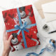 Joli bonhomme de neige sur un arrière - plan rouge pétillant