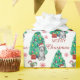 Toute personne qui a perdu son coeur à un adorable Collie Dog aux épaules brunes va adorer ce papier d'emballage de vacances! Le chien porte un chapeau de Père Noël rouge et blanc, et il est assis devant un arbre de Noël décoré. L'image est répétée à travers la surface, et il y a des flocons de neige rouges et des sucres de canne rayés entre les images. Egalement entre les images est un texte rouge qui dit "Joyeux Noël". Tout est posé sur un arrière - plan blanc.