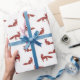 Papier Cadeau Motif de Noël de renards roux sur fond blanc