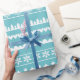 Papier d'emballage cyan moderne avec motifs blancs de Noël.