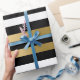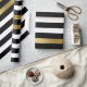 Motif à rayures noir et blanc avec 2 rayures dorées comme accent. Design moderne et chic.