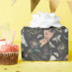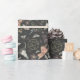 Le papier d'emballage éffrayant Halloween comporte un motif de planchettes, de mains, de crânes, de pentagrammes, de papillons de nuit et de fleurs sombres sur un arrière - plan noir cendré.