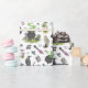 Le papier d'emballage Halloween éffrayant présente un motif de chaudrons bouillants, potions, casquettes de sorcières, chats noirs, corbeaux et boules de cristal.