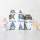 Mignons gnomes de couleur denim avec un chien et un chat moelleux.