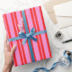 Papier Cadeau Motif des bandes verticales rose et rouge Preppy