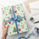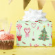 Ce papier d'emballage mignon est polyvalent et peut être utilisé pour donner des cadeaux ou des projets d'art et d'artisanat. Le design comprend des arbres de Noël, des sucres de canne, des bonbons et des gâteaux sur un arrière - plan vert.