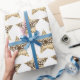 Papier d'emballage cadeau de Noël chic élégant motif d'étoiles dorées et blanches pour la saison de Noël ou votre occasion