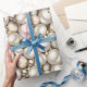 Papier Cadeau Motif d'ornements en argent chic ivoire or Baubles
