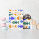 Le papier d'emballage coloré et mignon présente un motif à os de poisson bicolore en vert, bleu et orange. Personnalisé avec votre nom.