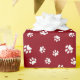 Papier Cadeau Motif Empreinte de patte blanc en rouge