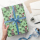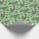 L'image d'un adorable Bulldog français portant un casquette du Père Noël rouge et blanc est la caractéristique du motif sur ce papier d'emballage cadeau de vacances. Le chien se tient au milieu d'un motif d'empreintes de pattes noirs et d'os blancs, et est répété sur un arrière - plan vert pâle de Noël.