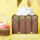 Papier enveloppé dans un motif de papier peint Art Déco vintage à base de plumes stylisées - rouille brun et jaune pâle, sur un arrière - plan chocolat foncé