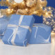 Papier Cadeau Motif feuille abstrait blanc et bleu