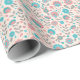 Papier Cadeau Motif floral d'art populaire turquoise et de