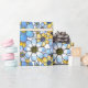 Papier Cadeau Motif floral rétro jouable, bleu doux et jaune