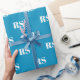 Monogramme personnalisé moderne bleu clair et blanc typographie lettre initiale cadeau motif Papier à envelopper. Texte blanc personnalisable sur arrière - plan solide bleu clair.