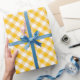 Motif jaune et blanc de contrôle de guingan de pays. Les coordonnées avec le pays occidental, le ranch et la grange dénomment le décor, particulièrement denim. Disponible dans les une série de produits de mariage et de partie.