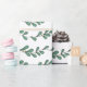 Papier d'emballage de vacances avec un motif dessiné à la main de branches d'orteils fourrés de feuilles verts et parsemé de baies.