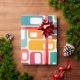 Ce papier d'emballage a un design moderne du milieu du siècle de rectangles avec un trou blanc dans les couleurs rétro.