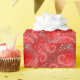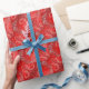 Papier d'emballage rouge élégant et festif. Le design a des flocons de neige tourbillonnants mis en miroir, ce qui le rend branché et chic.