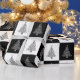 Papier d'emballage élégant de Noël blanc de motif noir d'arbre. Choisissez la taille et la finition de papier du menu d'options.
