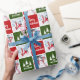 Papier d'emballage personnalisé vert, rouge et blanc "Joyeux Noël" avec le nom de famille, 2 photos personnalisées, et un motif d'arbre. Super pour envelopper vos cadeaux de Noël cet hiver et la saison des Fêtes.