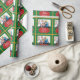 Ce papier d'emballage cadeau de Noël avec photo personnalisable comporte un arrière - plan vert foncé accentué d'un motif tourbillon vert citron et d'une bordure en or. Un cadre photo personnalisable vous permet d'ajouter votre photo préférée et une boîte tourbillonnant rouge contient du texte personnalisable pour un accueil de Noël et vos noms.