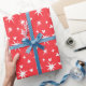 Ce motif de Noël rouge et blanc présente la silhouette emblématique de la tête de mickey ainsi que des étoiles blanches sur un arrière - plan rouge.