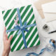 Motif à rayures blanches en diagonale contemporaine sur un arrière - plan vert. Design moderne mais simple et fantaisiste pour envelopper ces cadeaux d'anniversaire, de surprise ou de Noël amusants avec.