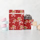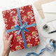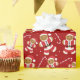 Papier à envelopper avec un Père Noël en pain d'épices souriant et motif sucre de canne.
