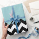 Elégante, élégante et raffinée, motif en zigzag (chevron) de couleur noir et blanc sur arrière - plan bleu. Un cadeau moderne et tendance, parfait pour les amoureux du zigzag dans votre vie.